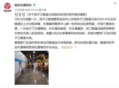 营口@所有司机_扬子江隧道今早恢复正常交通,漏水原因为注浆孔堵头脱落